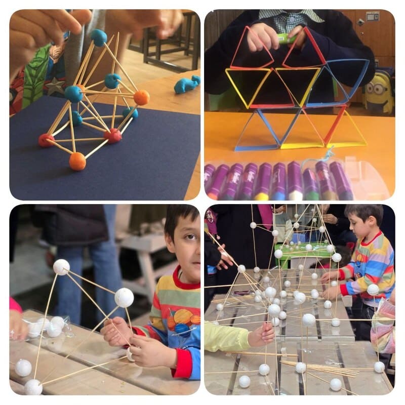 در این کارگاه ریاضی کاربردی کودکان پس از درک مفاهيم پايهی شکل دهندهی مثلث (نقطه، خط) و مشاهدهی نمونهها در محيط پيرامون و تصاویر، شروع به ساخت فرمهاي گوناگون با مثلثهای رنگی ميکنند. آنها در طول مراحل ساخت، فرم را از وجوه مختلف ميبينند، میشناسند، تجربه و خيالپردازي ميکنند. همچنین این تمرین به مفاهيم مقابلي همچون تراکم و پراکنندگي، درون و بيرون، پر و خالي و شناخت و ترکيب رنگها میپردازد. این کارگاه برای پرورش توجه و دقت کودکان نسبت به محیط پیرامون، پرورش خلاقيت و تجسم سه بعدي، تجربهی کارگروهی و پرورش مسئولیتپذیری در گروه و تقویت دستورزی برای این گروه سنی موثر است.