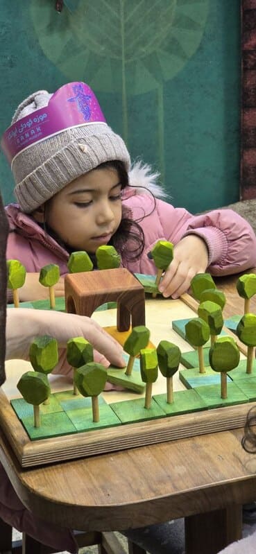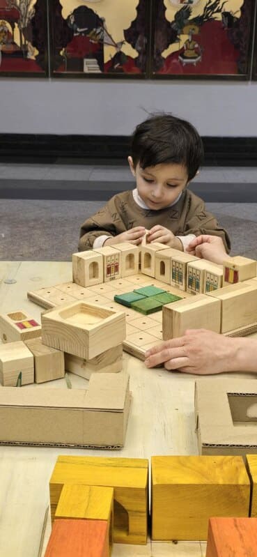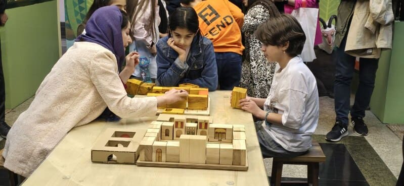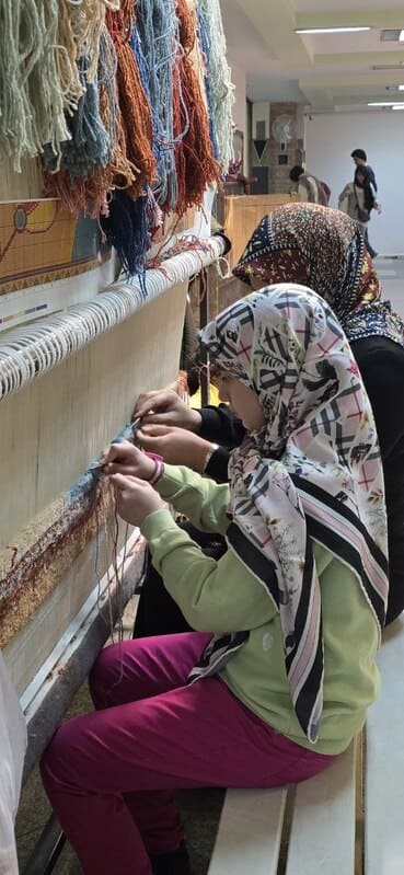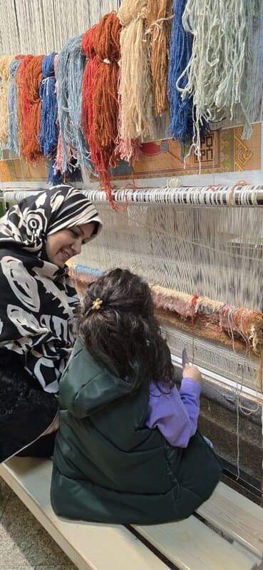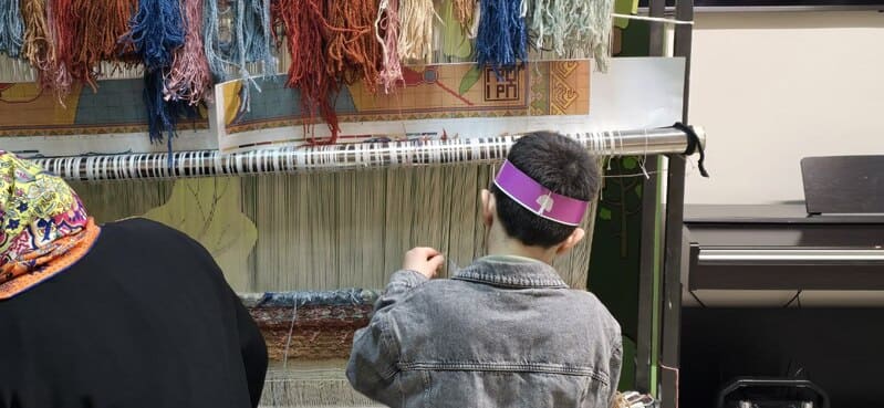 در کنار استادکار قالیبافی آموزش گره زدن تارو پود قالیداده شد و معمار خانه و باغ ایرانی با ماکتهای پازلی زیبا در خصوص معماری خانه وباغ ایرانی توضیح دادند و کارگاه برگزار کردند.