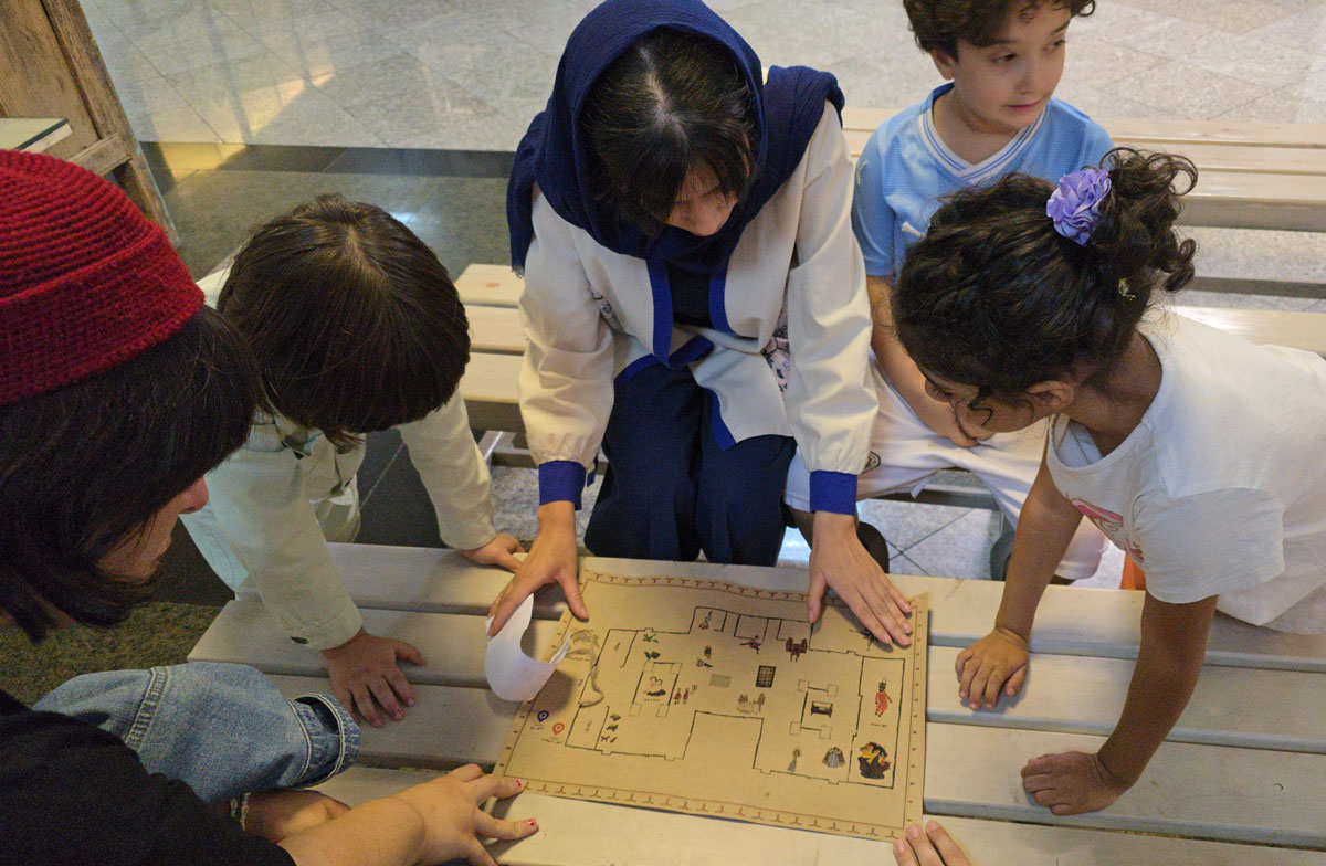 🪔 در ادامه، کودکان با نقشه و همراهی راهنما به یک ماجراجویی باستان‌شناسی دعوت می‌شوند. آن‌ها در گروه‌های کوچک، به جست‌وجوی نشانه‌های یک شیء باستانی در میان شن‌ها می‌پردازند، سرنخ‌ها را رمزگشایی می‌کنند و در نهایت، شیء پنهان را کشف کرده و درباره‌ی آن اطلاعاتی به دست می‌آورند.