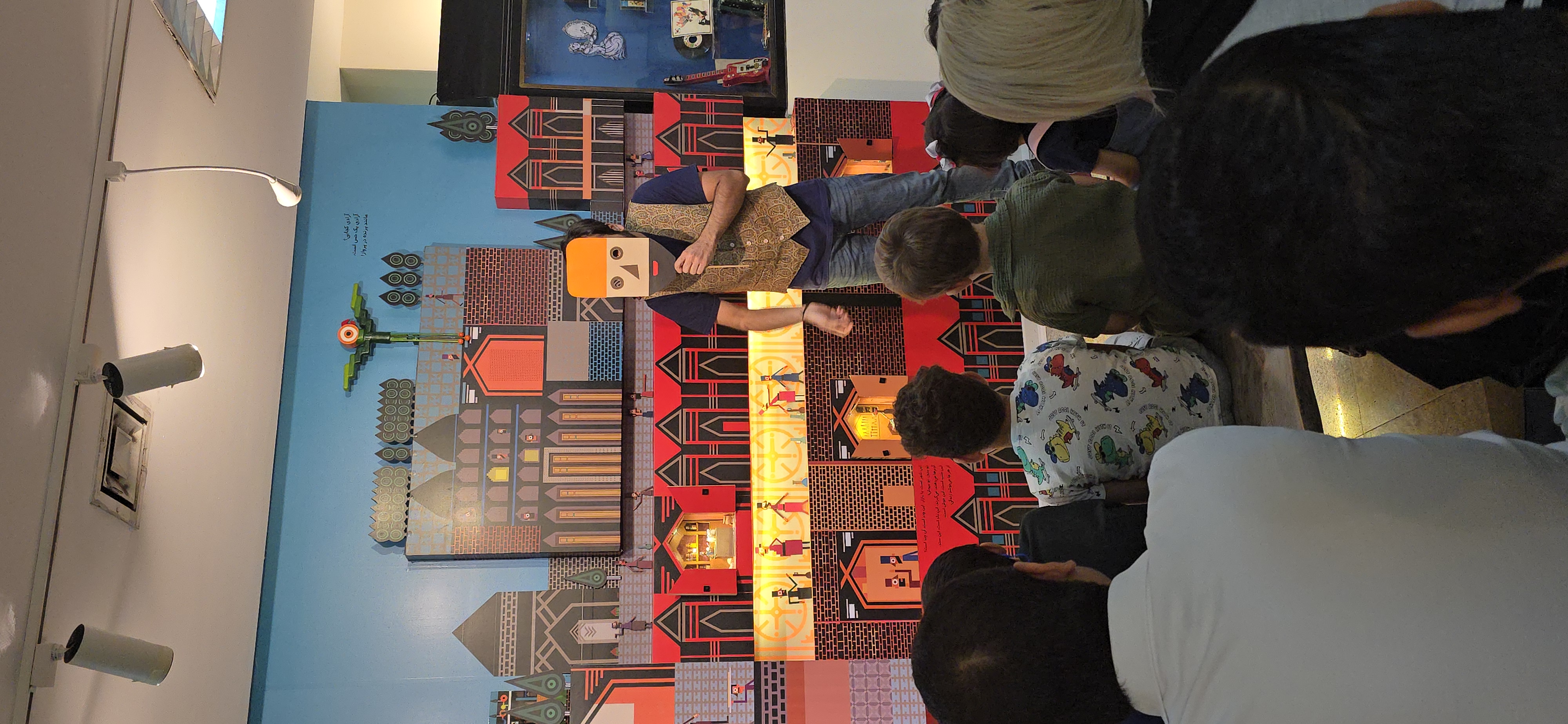 در این کارگاه، ابتدا نمایش طوطی و بقال که برگرفته از کتاب طوطی و بقال با بازآفرینی محمدهادی محمدی و تصویرگری امیر شعبان‌نژاد است، جلوی دیوار تعاملی طوطی و بقال اجرا می‌شود. بعد از اجرای این نمایش با کودکان و نوجوانان درباره‌ی فضایی که این داستان درآن روایت شده است، صحبت می‌کنیم و الگوی بازار ایرانی و ویژگی‌های آن را توضیح می‌دهیم. در ادامه از کودکان و نوجوانان می‌خواهیم که تجربه‌ی خود را از بازدید بازار ایرانی در شهرهای مختلف ایران بیان کنند.