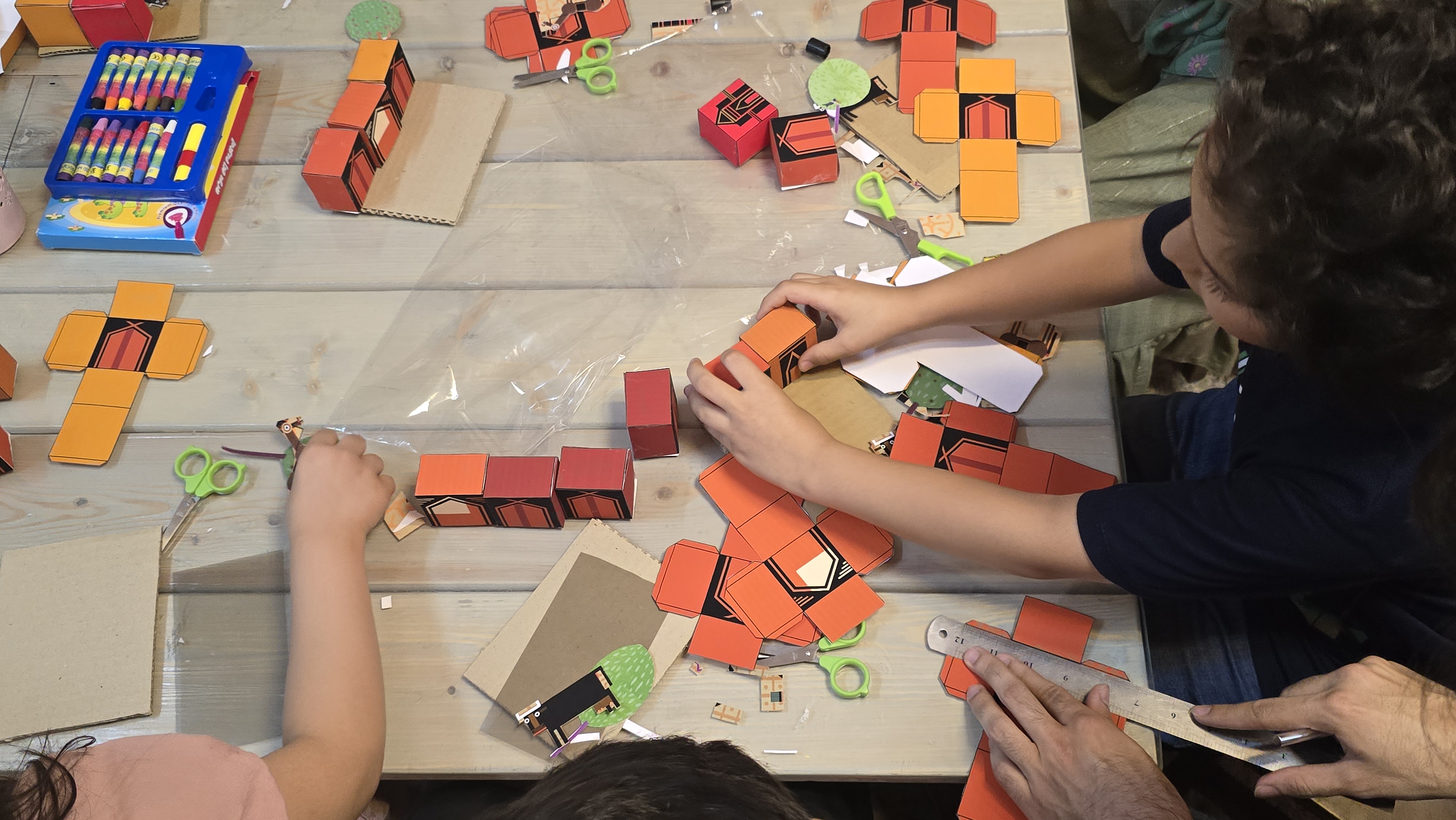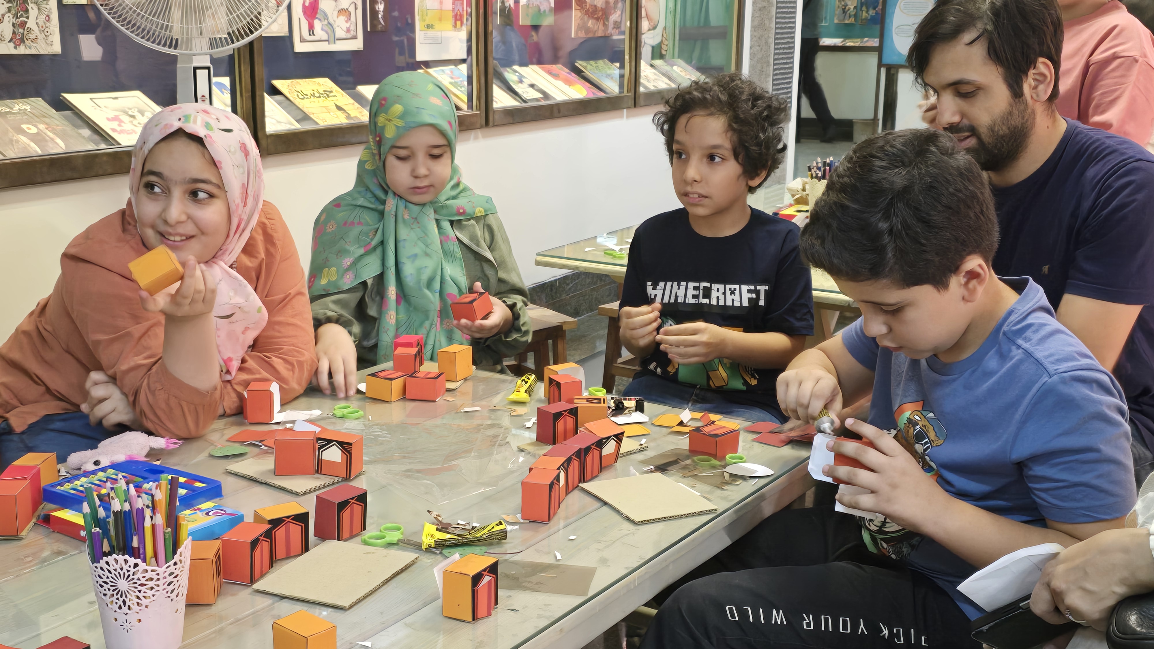 در بخش کارگاه، کودکان زیر 7 سال با نوارهای کاغذی که برگرفته از تصاویر کتاب طوطی و بقال است، به ساخت یک کلاژ از بازار می‌پردازند. کودکان بالای 7 سال هم با در اختیار داشتن مکعب گسترده‌ی چندین دکان دست به کار سرهم کردن مکعب‌ها و ساخت ماکت بازار می‌شوند. این ماکت قابلیت گسترش و تکمیل شدن تا هرزمان که کودک تمایل داشته باشد، را دارد. این کارگاه به شناخت کودکان از محیط پیرامون و معماری ایرانی کمک می‌کند و در پرورش دست‌ورزی و قدرت حل مسئله کودکان موثر است.