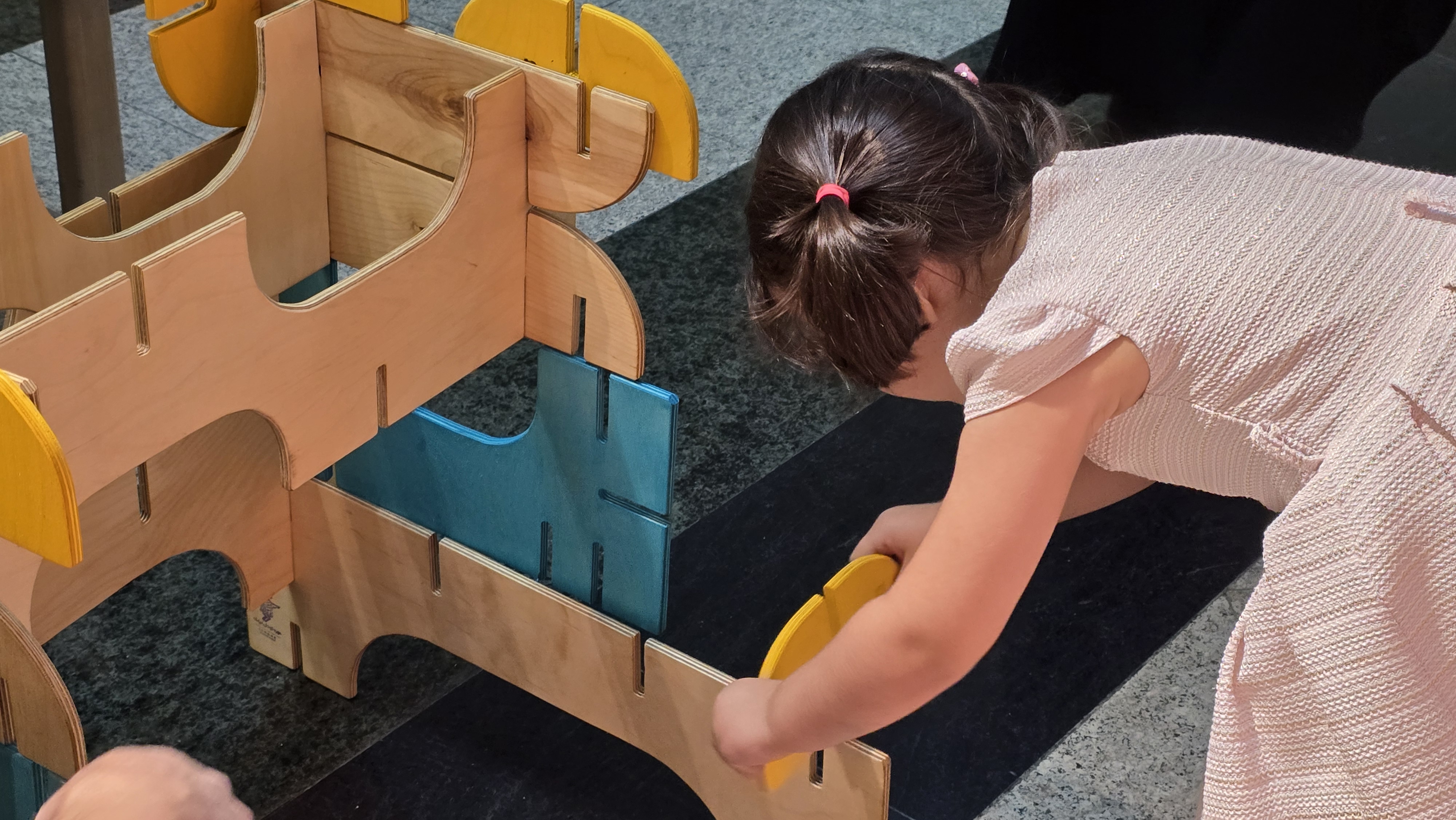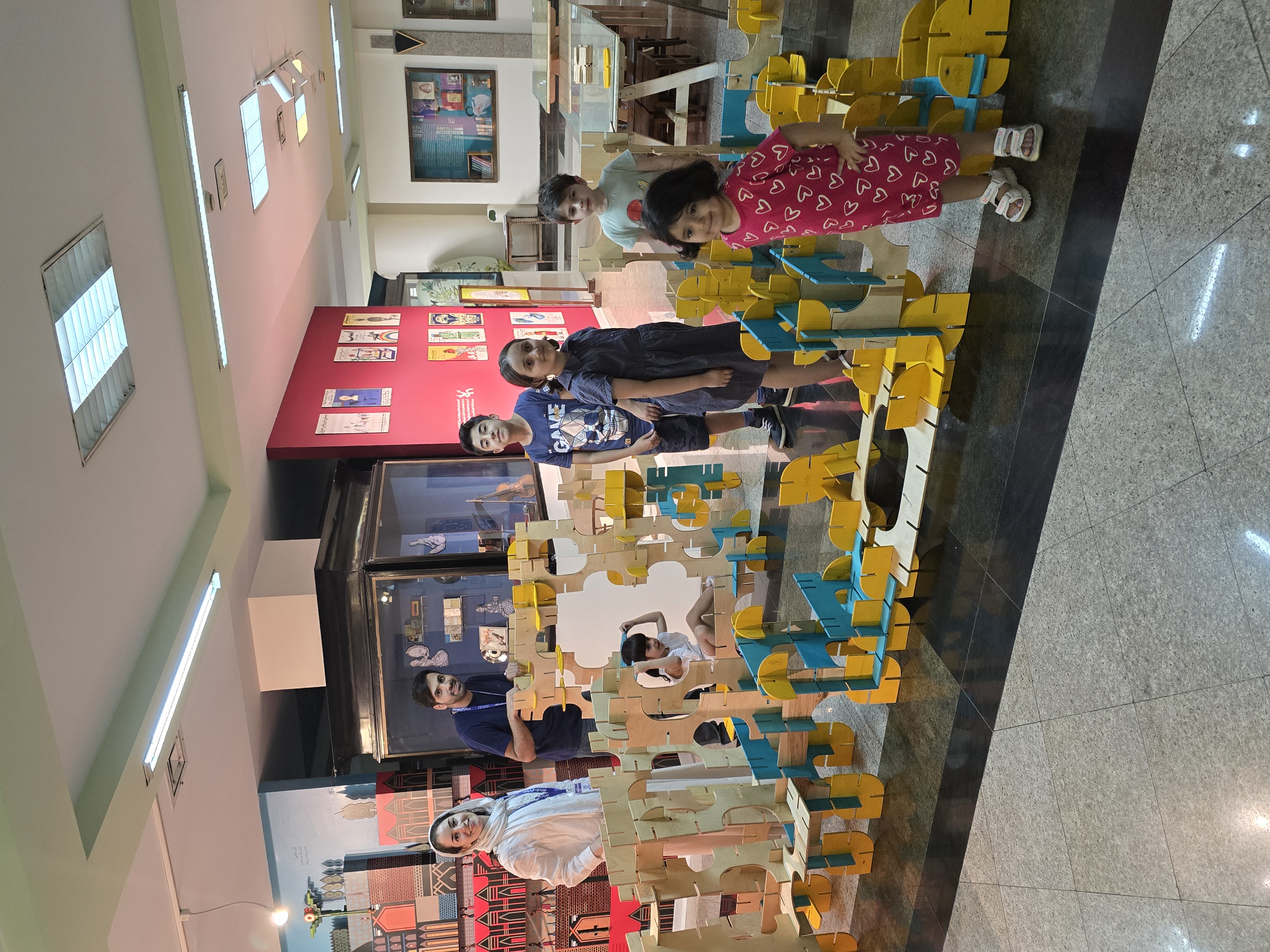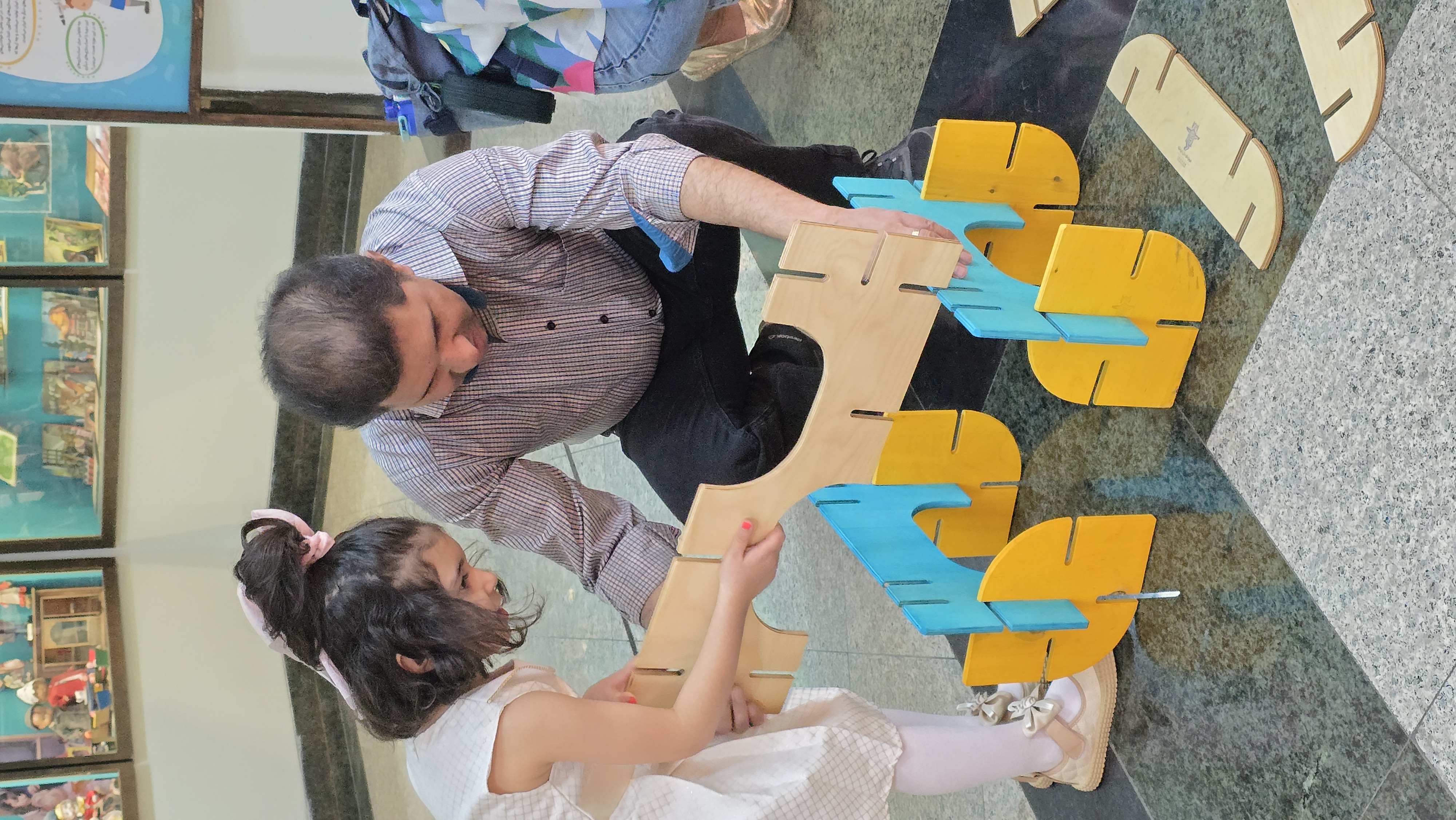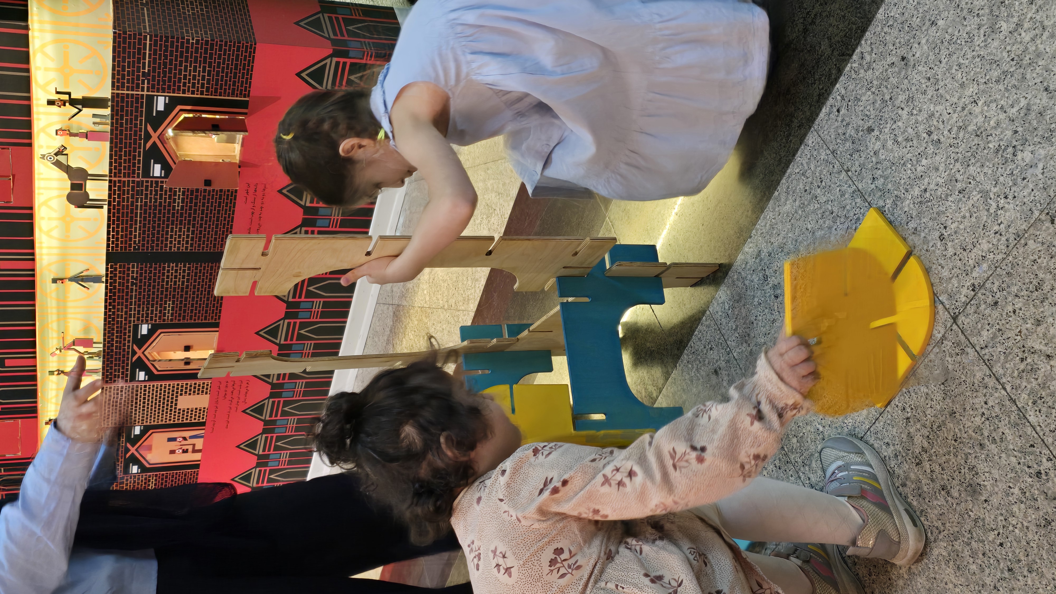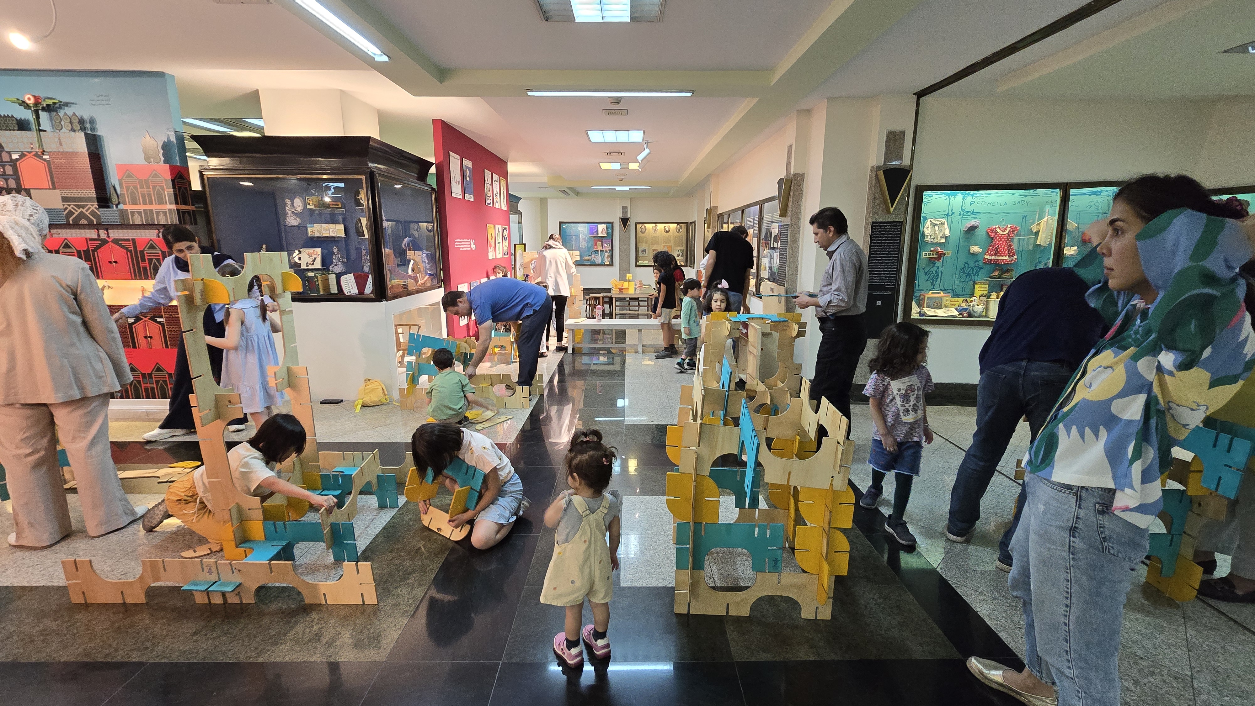 در این کارگاه کودکان و نوجوانان با اشکال هندسی آشنا می‌شوند. پس از آن‌که با آن‌ها از نقطه، خط و سطح صحبت می‌کنیم به همراه یکدیگر در موزه قدم می‌زنیم و درباره اشکال مختلفی که می‌بینیم گفتگو می‌کنیم و نقطه، خط و سطح را در اشیای موجود در موزه پیدا می‌کنیم. در ادامه با کمک قطعات چوبی که با توجه به شکل‌های موجود در معماری ایرانی ساخته شده‌اند، کودکان و نوجوانان این فرصت را می‌یابند که با صفحات چوبی مختلف به ساخت اشکال هندسی متنوع بپردازند. دست‌ساخت آن‌ها در کنار هم چیدمانی را شکل می‌دهد که کودکان و نوجوانان می‌توانند از طریق آن تجربه‌های فضایی مختلفی به دست آورند. علاوه بر این، این نوع کارگاه‌ها فرصتی برای تعامل و ارتباط بیشتر کودکان و نوجوانان بایکدیگر و همچین با والدینشان است به‌طوریکه می‌تواند به تجربه‌ی بازی گروهی تبدیل شود و در دست‌ورزی و پرورش تجسم فضایی کودکان موثر است. هم‌چنین بعد از این تجربه در کنار کودکان و نوجوانان به بلندخوانی یک کتاب در پیوند با مفاهیم کارگاه می‌پردازیم و اشکال مختلف را در کتاب بررسی می‌کنیم.