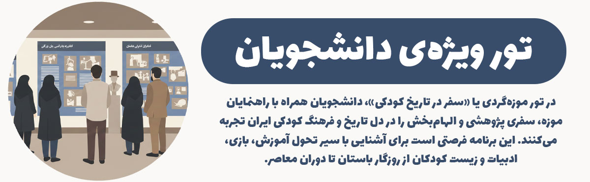 در تور موزهگردی یا «سفر در تاریخ کودکی»، دانشجویان همراه با راهنمایان موزه، سفری پژوهشی و الهامبخش را در دل تاریخ و فرهنگ کودکی ایران تجربه میکنند.