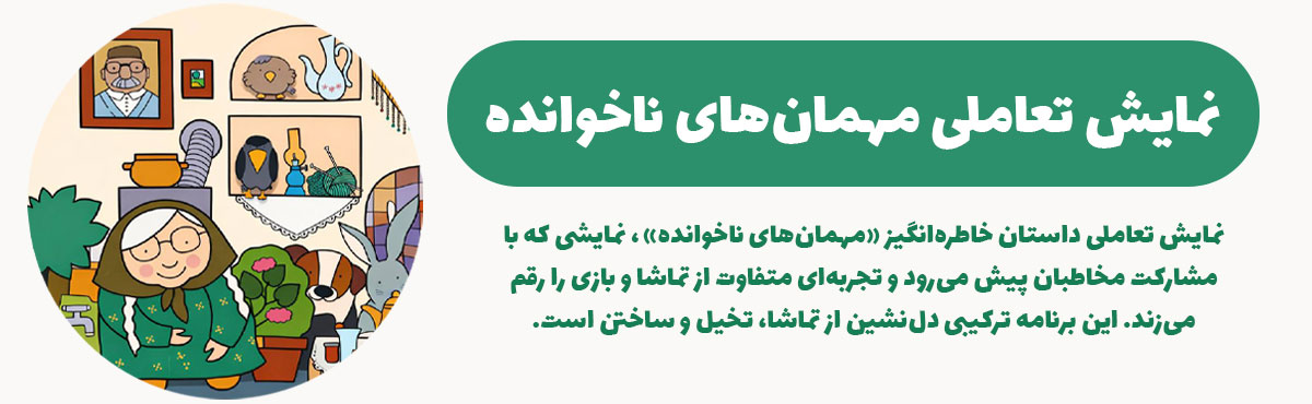 در این برنامه به تماشای نمایش تعاملی داستان خاطرهانگیز «مهمانهای ناخوانده» مینشینیم؛ نمایشی که با مشارکت مخاطبان پیش میرود و تجربهای متفاوت از تماشا و بازی را رقم میزند.