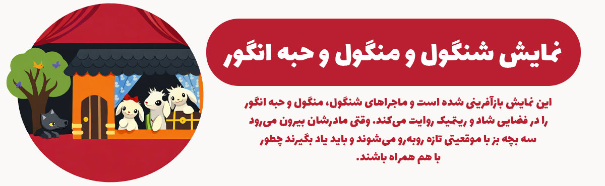 این نمایش بازآفرینی شده‌ است و ماجراهای شنگول، منگول و حبه‌ انگور را در فضایی شاد و ریتمیک روایت می‌کند. وقتی مادرشان بیرون می‌رود، سه بچه‌ بز با موقعیتی تازه روبه‌رو می‌شوند و باید یاد بگیرند چطور با هم همراه باشند. نمایش با موسیقی و حرکت‌های ریتمیک، اهمیت دقت، همکاری و گوش‌دادن به حرف بزرگ‌ترها را به شکل لطیف و سرگرم‌کننده نشان می‌دهد.